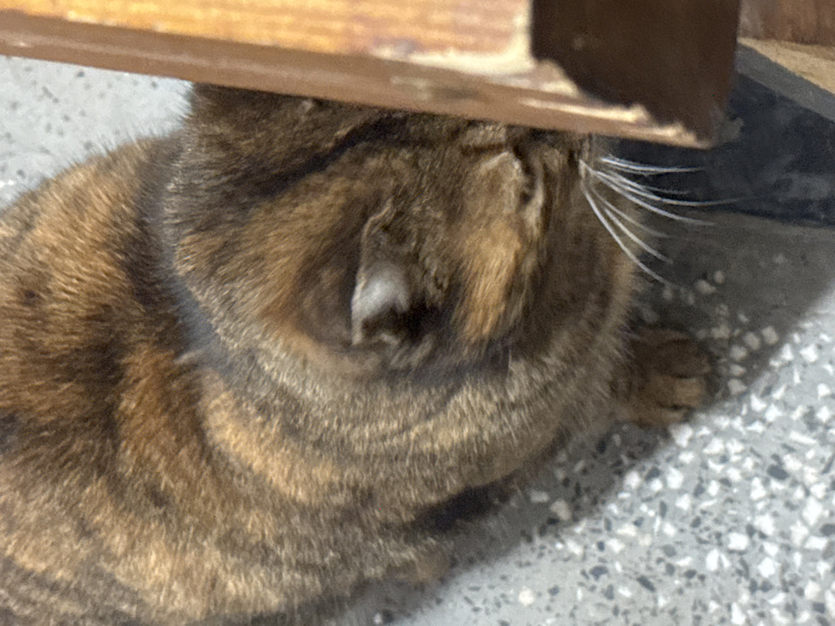 - "A tabby cat, primarily brown with darker stripes, rests on a speckled, light-grey floor in Plovdiv, Bulgaria" by FM-rhhz43, licensed under CC BY 4.0