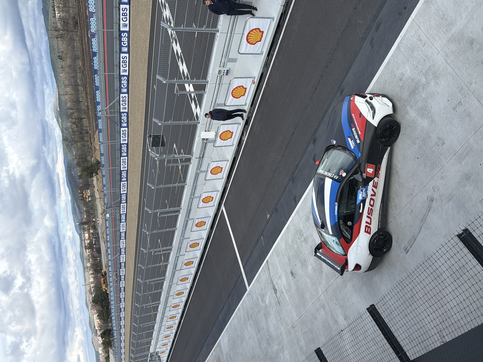 race car, a white, red, and blue BMW with the number 4 and the name "Busove