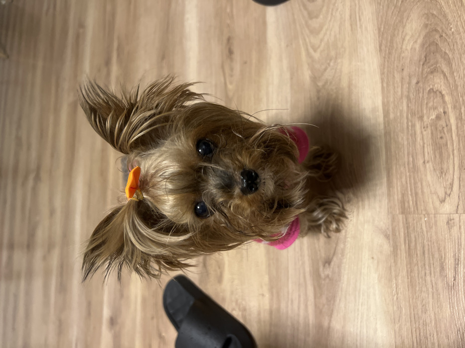 - "A small Yorkshire Terrier dog stands centrally on a light-colored wooden floor in an indoor setting in Plovdiv, Bulgaria" by FM-qd3B12, licensed under CC BY 4.0