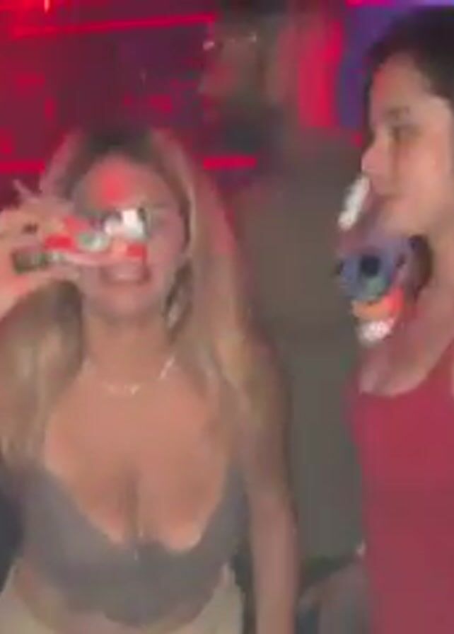 two women dancing in a crowded nightclub-like environment
