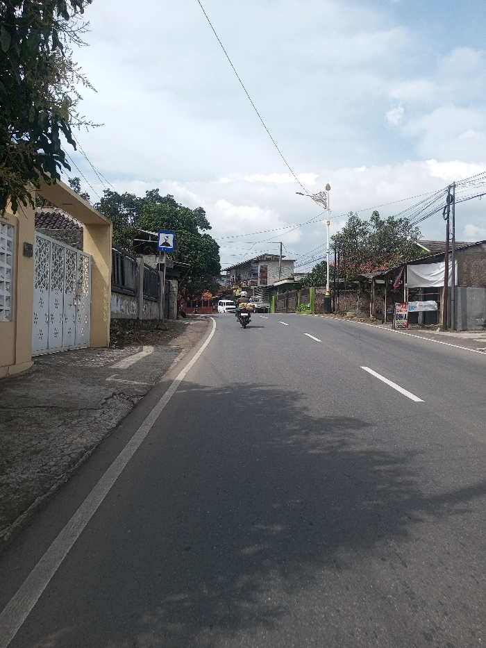 The image depicts a daytime scene on an asphalt road in the city of Chhenangri_Rishor, Bhutan, under a partially cloudy sky