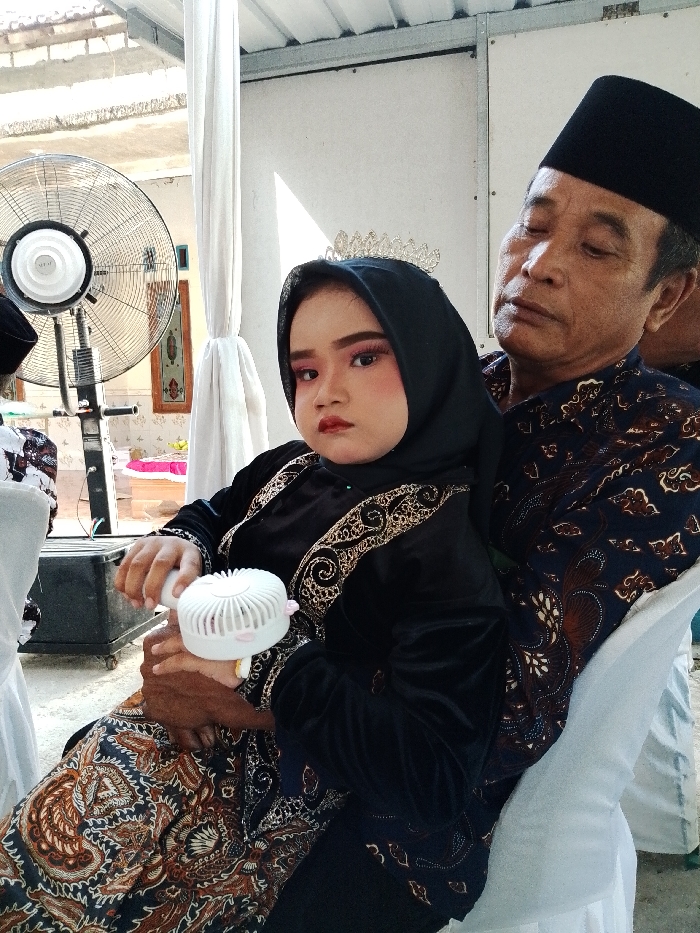 - "A man and a young girl are seated together in an open-air or semi-enclosed event space in Juwana, Indonesia" by FM-BBWcp1, licensed under CC BY 4.0