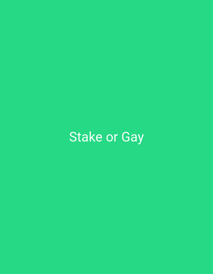 The image is a solid green background with the text "Stake or Gay" in white font centered on the image