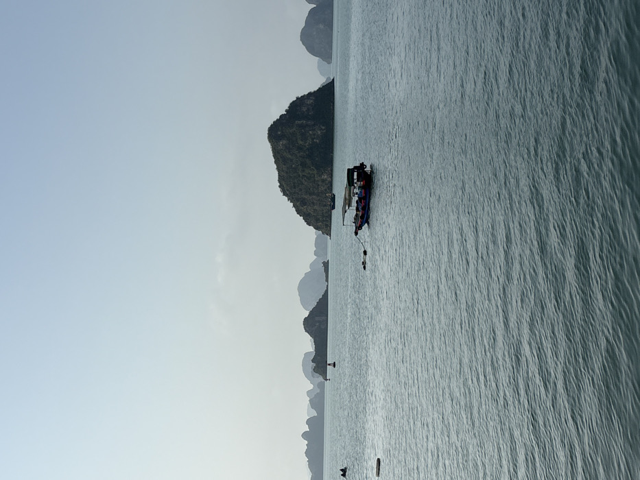- "The image displays a tranquil seascape in Ha Long Bay, Ha Long Ward, Vietnam, under a pale blue, hazy sky with minimal cloud cover" by FM-Ju5AS2, licensed under CC BY 4.0