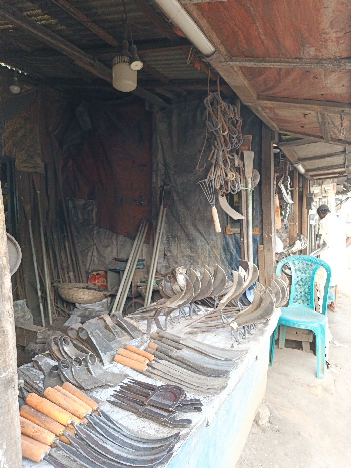 - "The image depicts an outdoor vendor stall in Muladi, Bangladesh, specializing in agricultural tools" by FM-xENTm1, licensed under CC BY 4.0