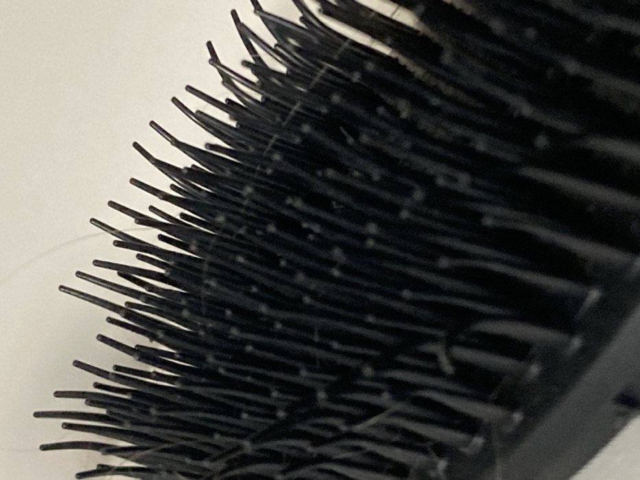 - "A close-up, angled view depicts the bristled head of a black hairbrush, located in Palma de Mallorca, Spain" by FM-YzcdC3, licensed under CC BY 4.0