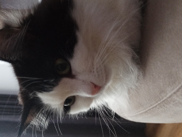 - "A black and white domestic cat is depicted in a medium shot, positioned indoors" by FM-5QedD3, licensed under CC BY 4.0