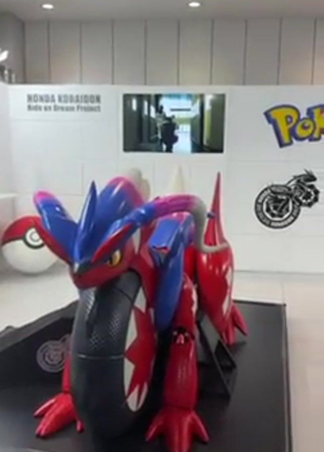 display featuring Pokémon Koraidon and Miraidon statues, part of the "Honda Koraidon Ride on Dream Project" and "Toyota Miraidon Project