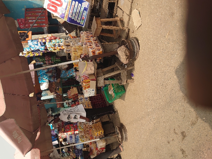 The image displays an outdoor market scene in Lokoja, Nigeria, under bright daylight
