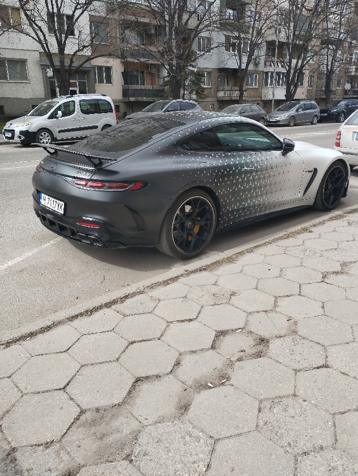 - "A custom-wrapped Mercedes-AMG GT S Coupe, bearing Bulgarian license plate W 7117 KK (Shumen region), is parked diagonally on an asphalt road surface adjacent to a curb" by FM-o242R2, licensed under CC BY 4.0