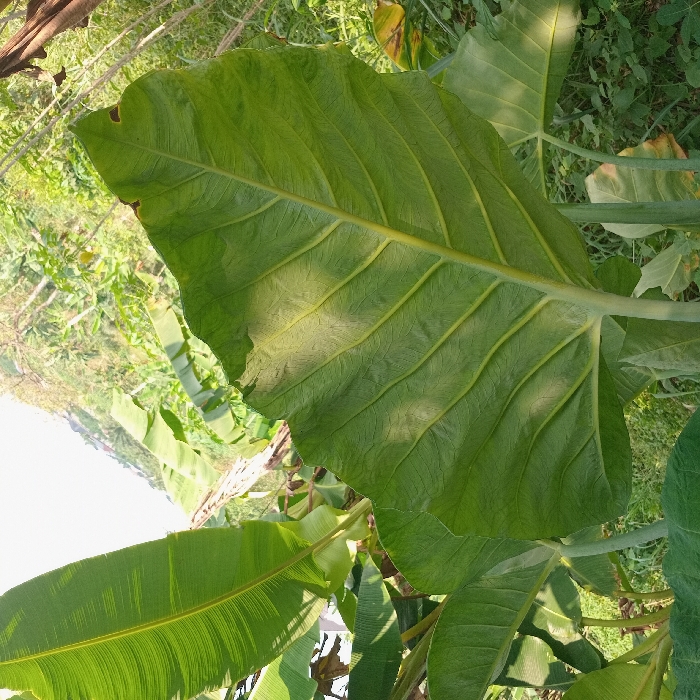 - "The image captures a close-up view of the underside of a large, dark green leaf, characterized by prominent lighter green veins and a central stem" by FM-dCfsg1, licensed under CC BY 4.0