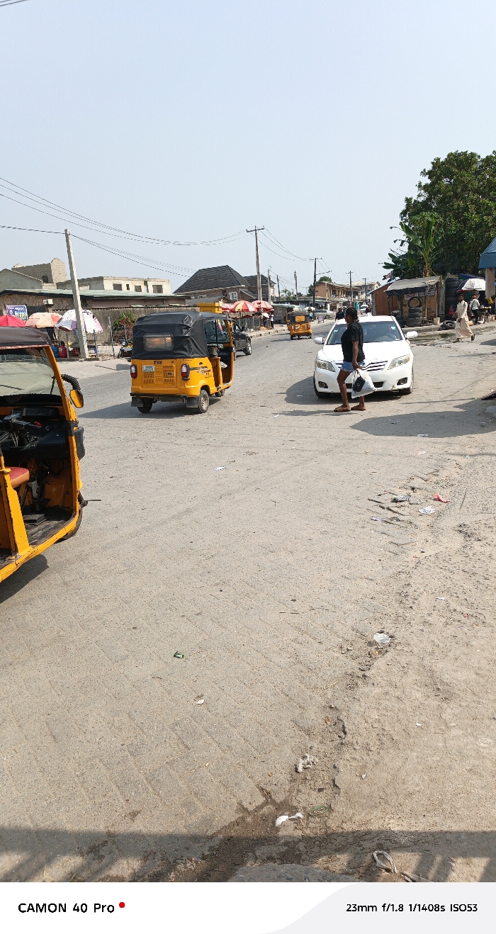 The image depicts a daytime street scene in Ado, Nigeria