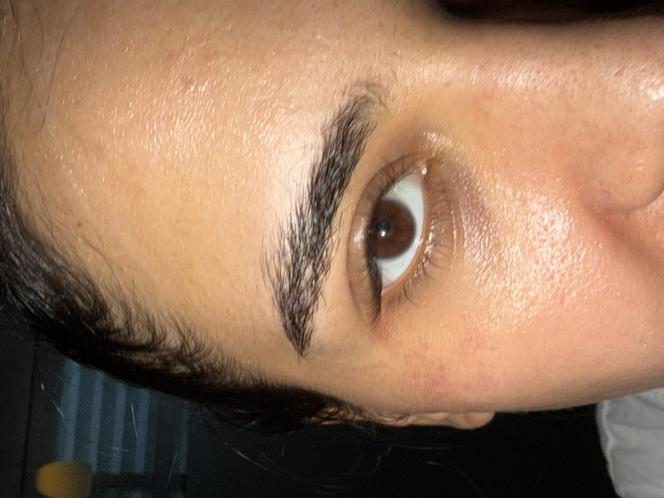 An eye, brow, forehead, and nose are featured in a close-up shot