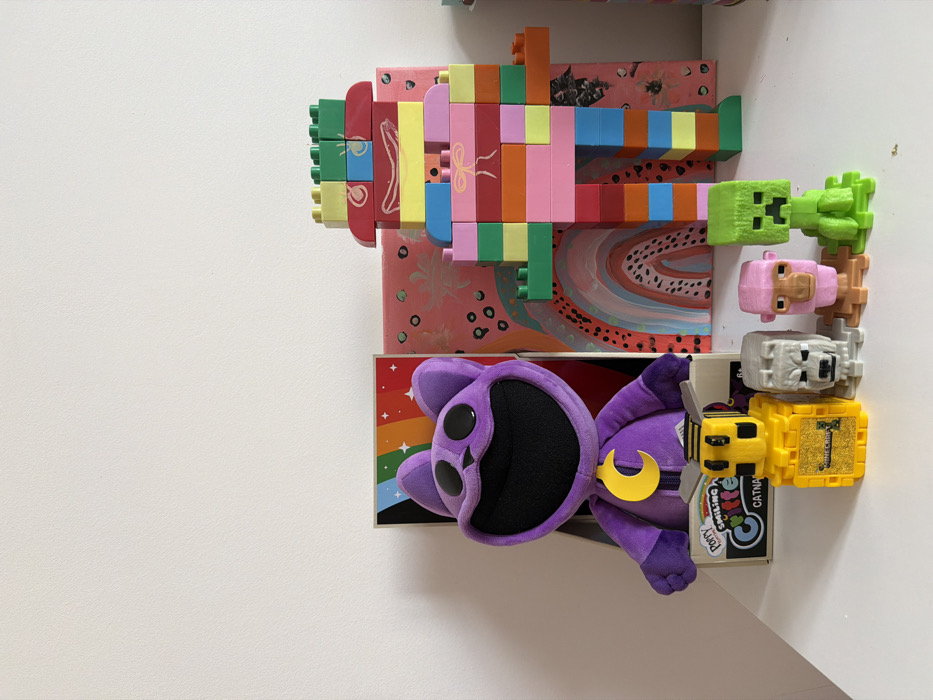 - "The image depicts an indoor scene featuring an arrangement of toys and artwork on a white surface against a plain white wall" by FM-rE8HA3, licensed under CC BY 4.0