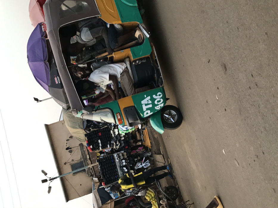 - "This image captures a street scene in Rafin Par, Nigeria, centered on a green, yellow, and black motorized tricycle (keke napep) with "PTA-406" visible on its side, positioned on an asphalt road" by FM-3YT3f2, licensed under CC BY 4.0