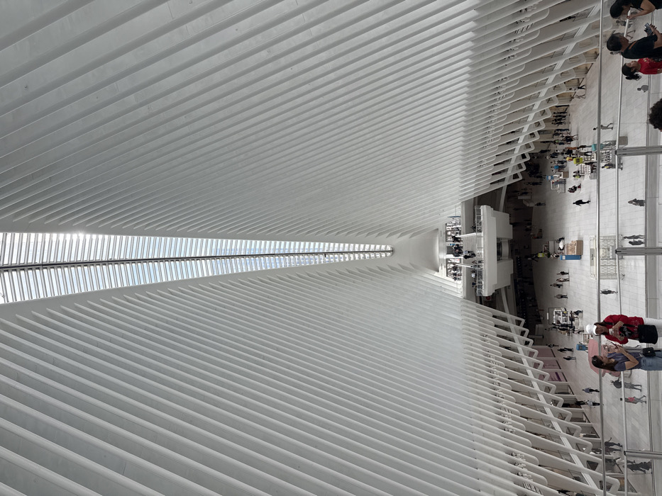 The image displays the interior of the World Trade Center Transportation Hub, also known as The Oculus, located in New York City, United States