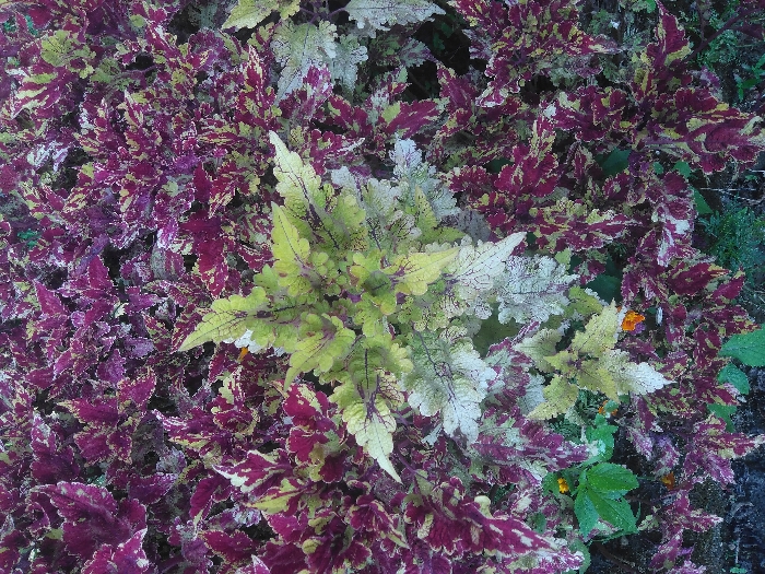 - "The image displays a dense arrangement of variegated foliage, predominantly Coleus (Plectranthus scutellarioides) plants, viewed from an overhead perspective in Ciloto, Indonesia" by FM-DrhJa2, licensed under CC BY 4.0