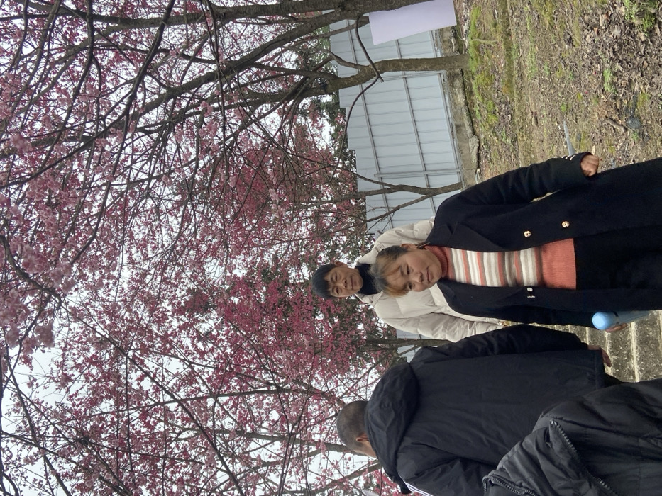 - "Three people stand outdoors beneath blossoming cherry trees" by FM-QyxGR2, licensed under CC BY 4.0