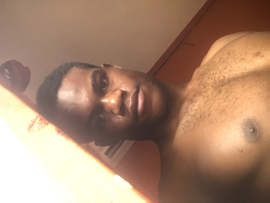 A dark-skinned male is depicted in a close-up indoor portrait in Nkwelle, Nigeria