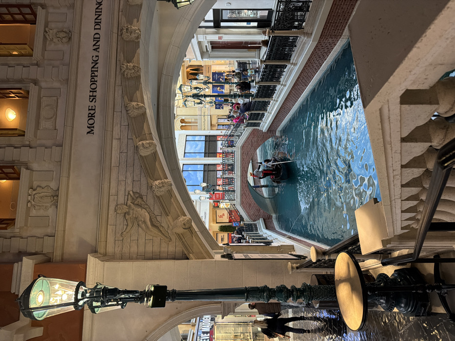 - "An indoor canal flows with a gondola carrying passengers" by FM-1neqH3, licensed under CC BY 4.0