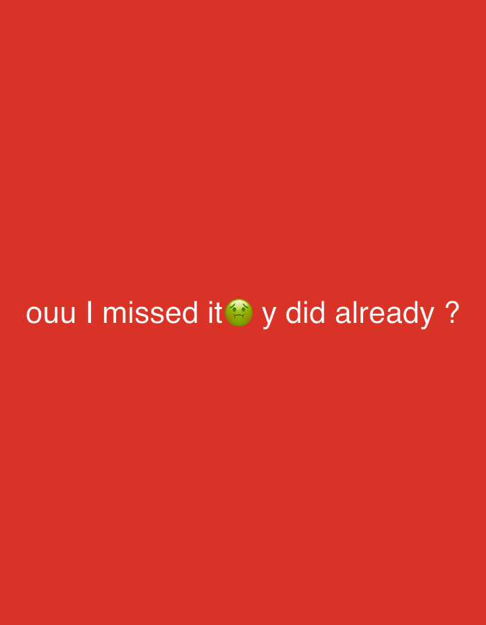 The image displays a solid, uniform red background. Centered horizontally and slightly below the vertical midline is a line of white text that reads: "ouu I missed it" followed by a green nauseated face emoji (🤢), and then the text "y did already ?". There are no discernible people, physical objects, specific actions, or environmental details that would indicate a real-world location or scene. The image content is purely digital text and an emoji on a colored background. The location specified, Ain Lahcen, Morocco, is not visually represented within the image data itself.