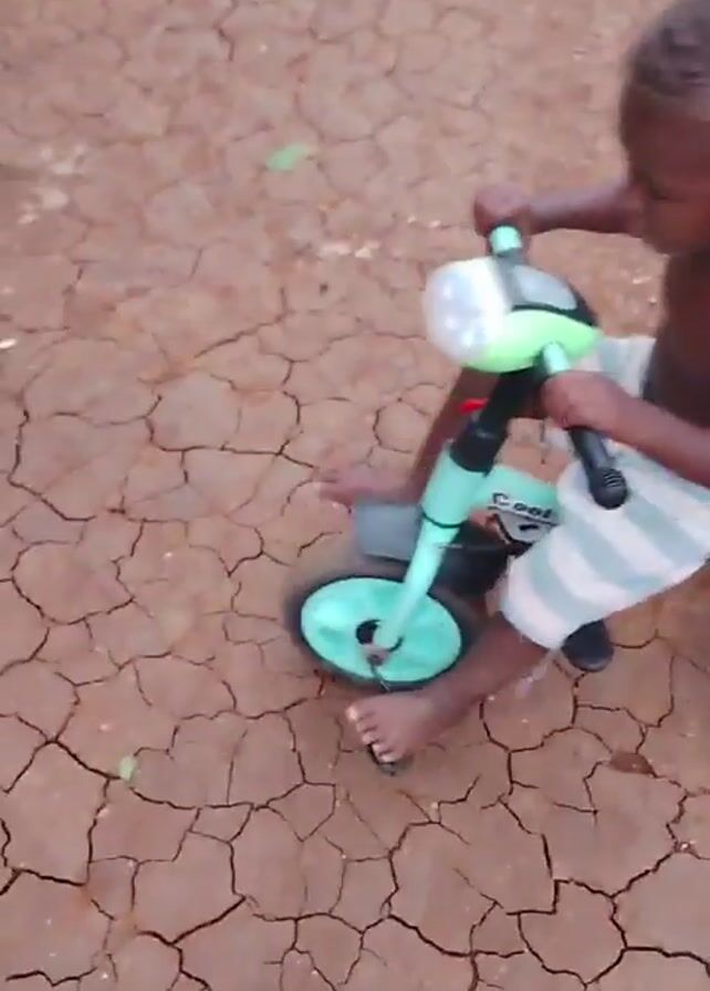 - "A small, shirtless boy sits on a light blue tricycle in an outdoor area" by FM-ivqTS2, licensed under CC BY 4.0