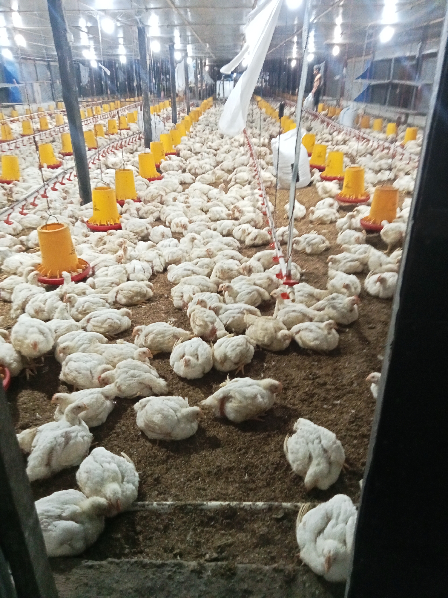 - "An indoor poultry farming facility in Tu, Indonesia, is depicted, densely populated with thousands of white broiler chickens" by FM-KF3a73, licensed under CC BY 4.0