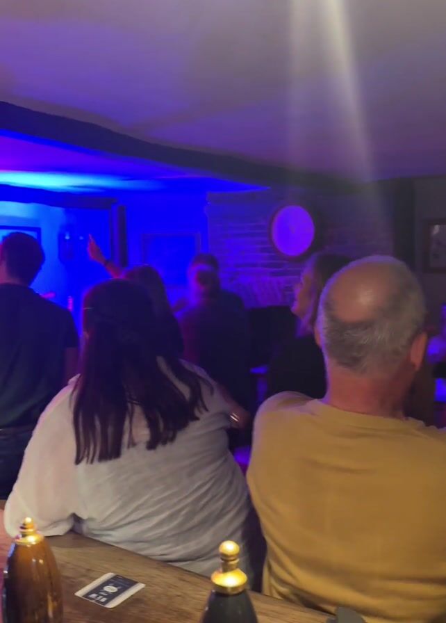 - "A dimly lit bar with blue, purple, green and red stage lighting shows a group of mostly men dancing in front of a band or entertainment" by FM-ukzG53, licensed under CC BY 4.0