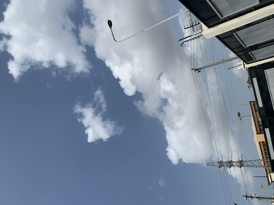 - "The scene depicts an outdoor urban environment in Alaguntan, Nigeria, under a bright blue sky partially obscured by scattered white cumulus clouds" by FM-h2Yvb2, licensed under CC BY 4.0