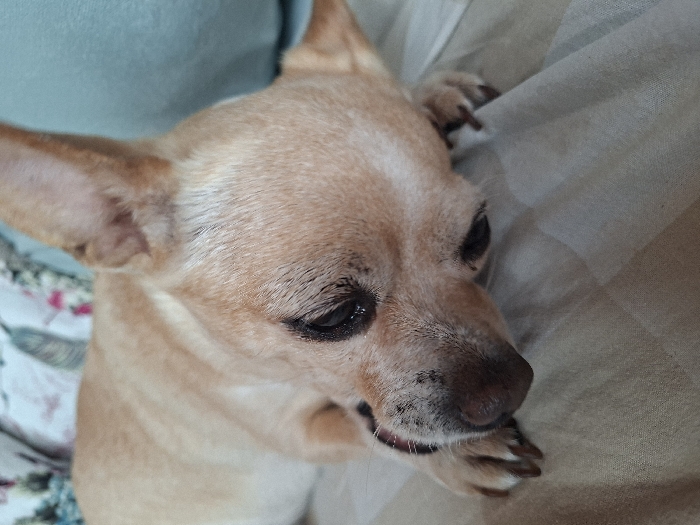 - "This image depicts a light brown/tan Chihuahua lying on a bed or similar soft surface, located in the city of Isperih, Bulgaria" by FM-YQydj1, licensed under CC BY 4.0
