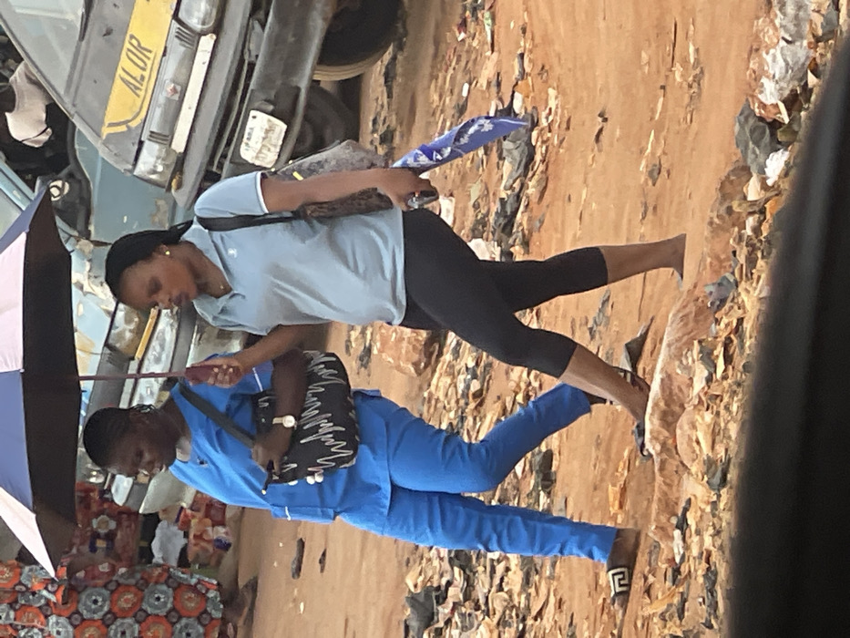 - "The image captures an outdoor scene in Nkpor, Nigeria, featuring two adult females walking from left to right across an unpaved, reddish-brown dirt surface littered with debris and various pieces of trash" by FM-CFMKJ2, licensed under CC BY 4.0