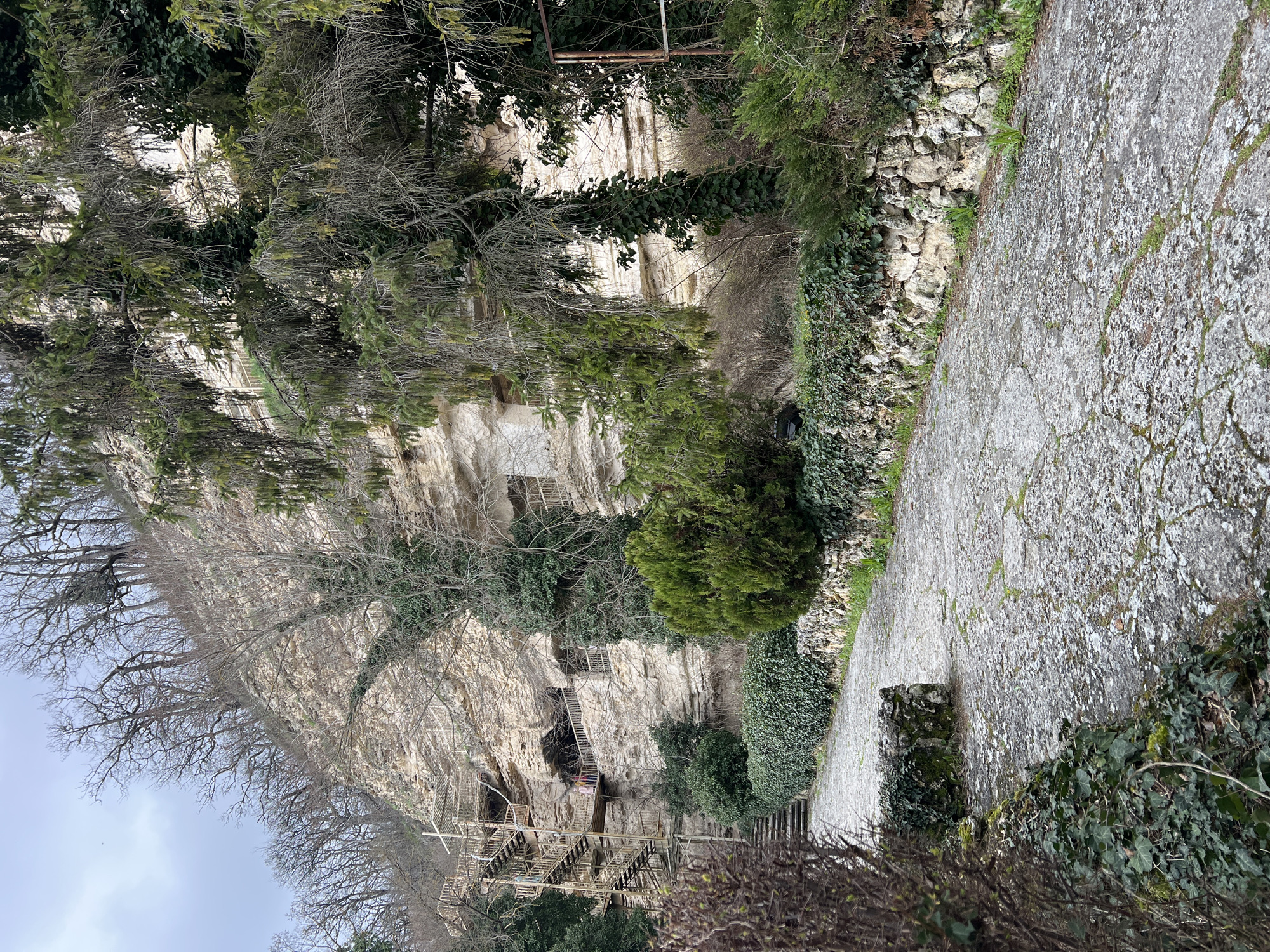 - "The image depicts a rocky cliff face with several levels connected by wooden staircases" by FM-SHO9l2, licensed under CC BY 4.0