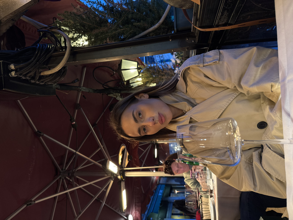 - "A young woman with long, straight brown hair and light eyes is seated at an outdoor restaurant table in Venice, Italy, in the evening" by FM-yfpiR2, licensed under CC BY 4.0
