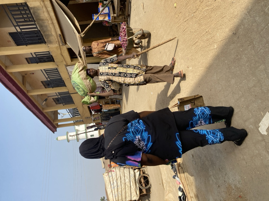 This image depicts an outdoor market or street scene in Kafanchan B, Nigeria, under clear daylight conditions
