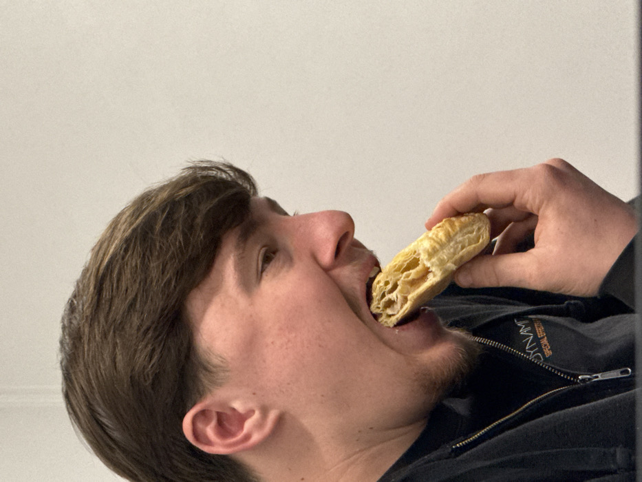 - "The scene, located in Epping Forest, United Kingdom, depicts a male individual in profile, actively eating a pastry" by FM-H3TWA2, licensed under CC BY 4.0