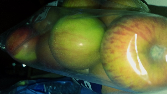 - "The image displays a close-up, vertical view of multiple bi-colored apples contained within a clear, flexible plastic bag" by FM-0J88a2, licensed under CC BY 4.0