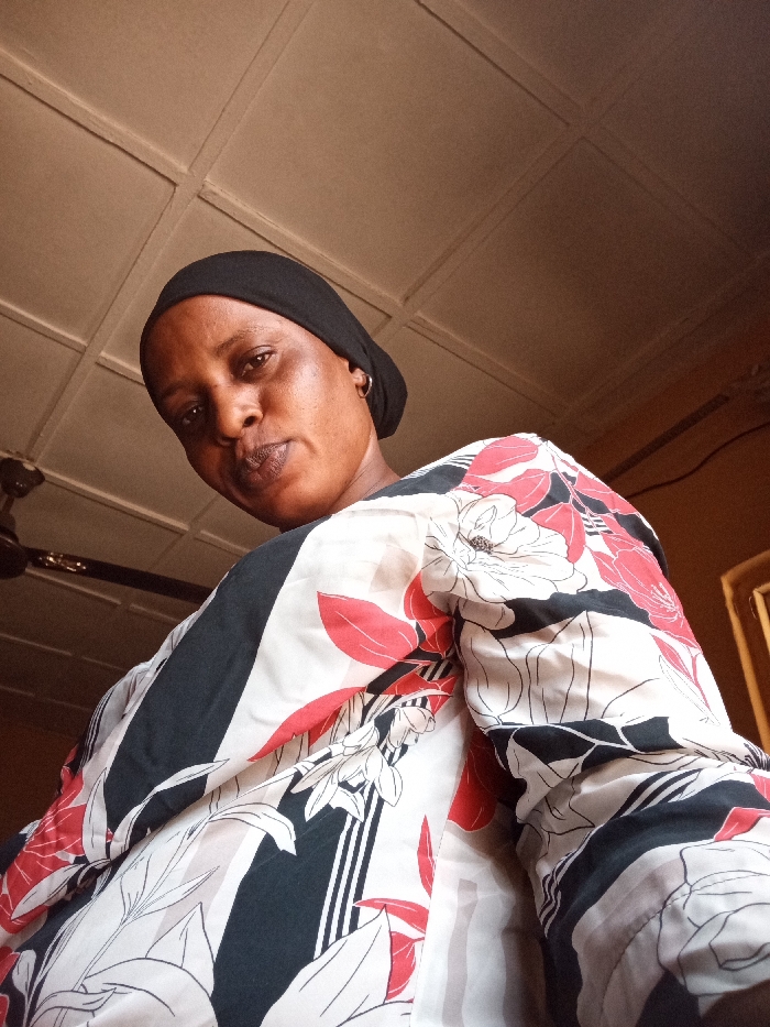 An adult female with brown skin is depicted in a low-angle indoor portrait within a room in Narayi, Nigeria