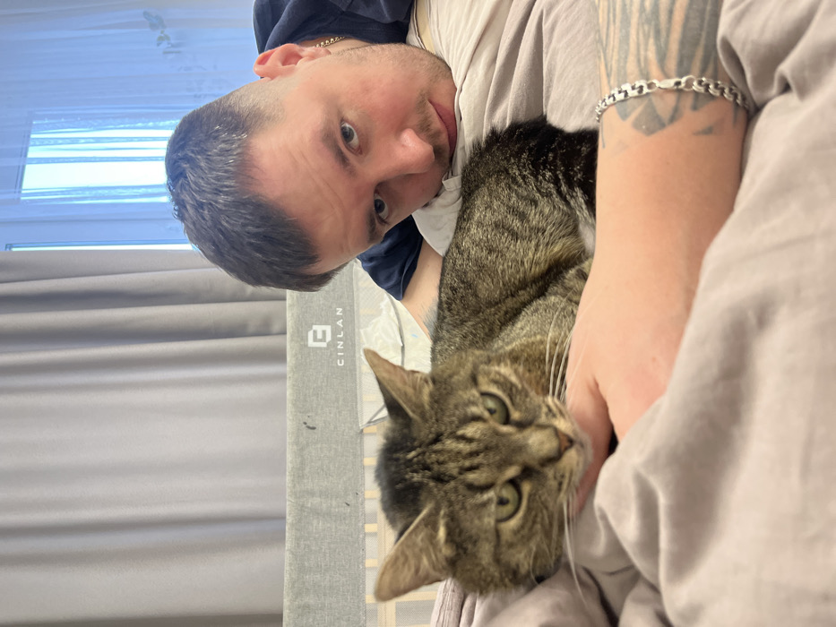 - "This image, taken in Akulovo (Gp Kubinka), Russia, shows an adult male and a domestic cat in an indoor setting, likely a bedroom" by FM-Wibut2, licensed under CC BY 4.0