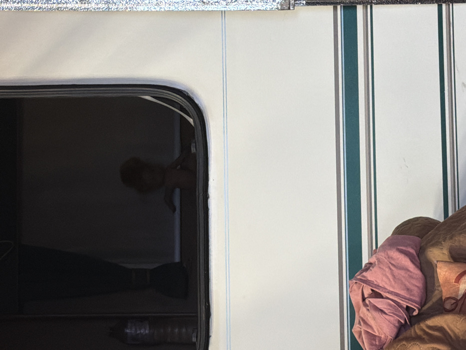 - "The image depicts a partial exterior view of a white recreational vehicle or caravan, featuring a window and lower body panel" by FM-p5RMw1, licensed under CC BY 4.0