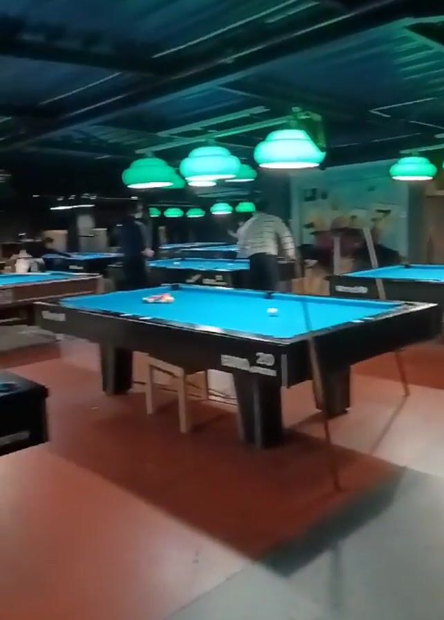 Here's a detailed description of the video: The video shows the interior of a billiard hall