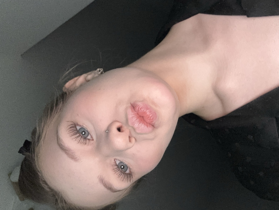 A close-up, self-portrait style image features an individual identified as a young adult female