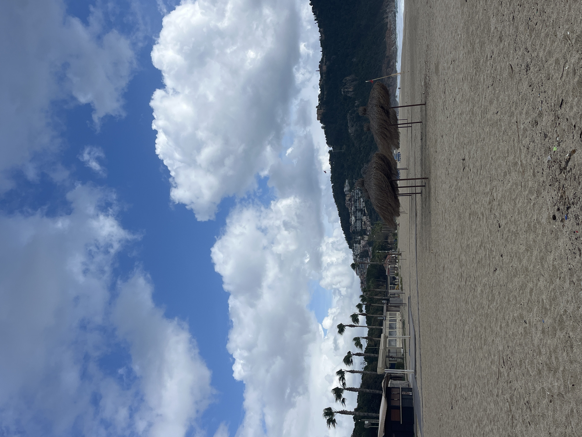 The image depicts a beach scene in Alanya, Turkey