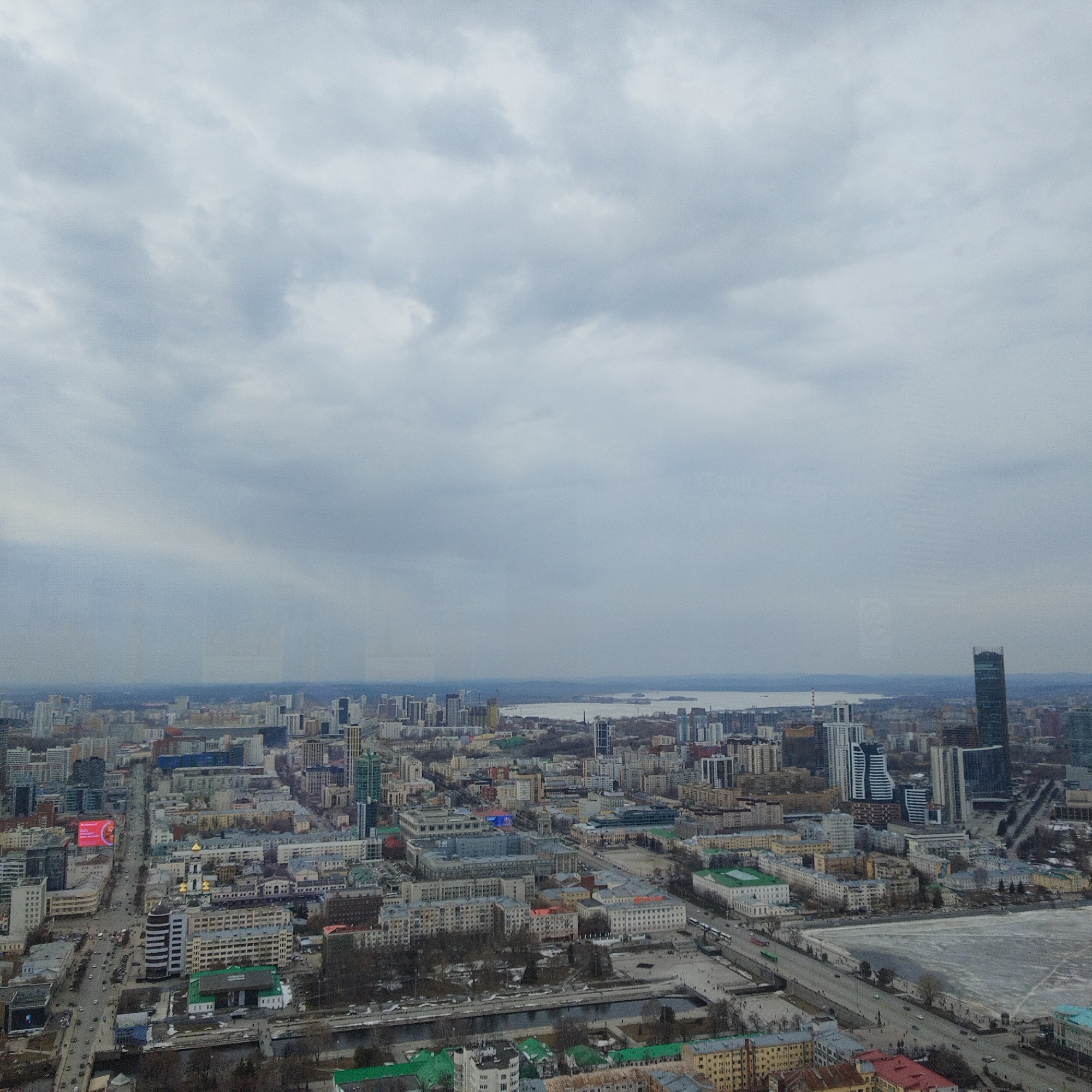 n elevated view of Yekaterinburg, Russia, under a cloudy sky