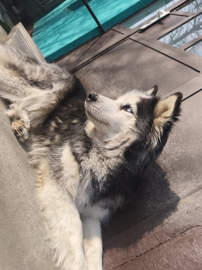 - "An Alaskan Malamute or Siberian Husky-type dog lies on its left side outdoors in Valchedram, Bulgaria" by FM-AKM853, licensed under CC BY 4.0
