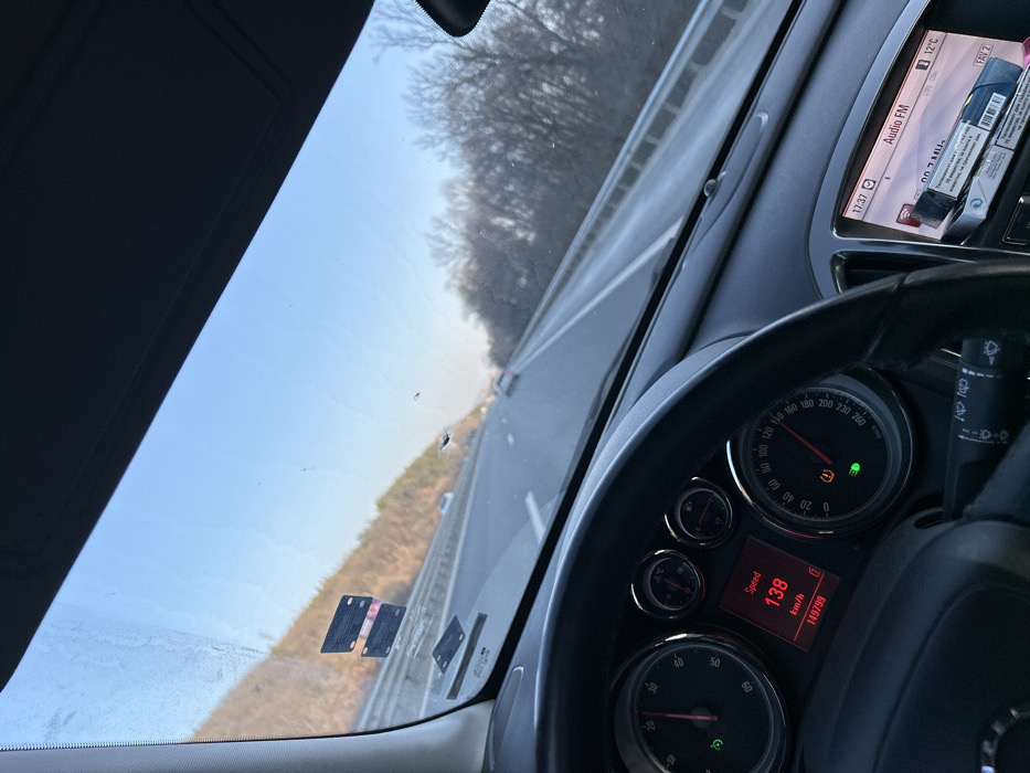 - "The image depicts a first-person view from inside a dark-colored vehicle, likely an Opel, traveling on a multi-lane highway in the vicinity of Rajana, Bulgaria" by FM-MRBhH3, licensed under CC BY 4.0