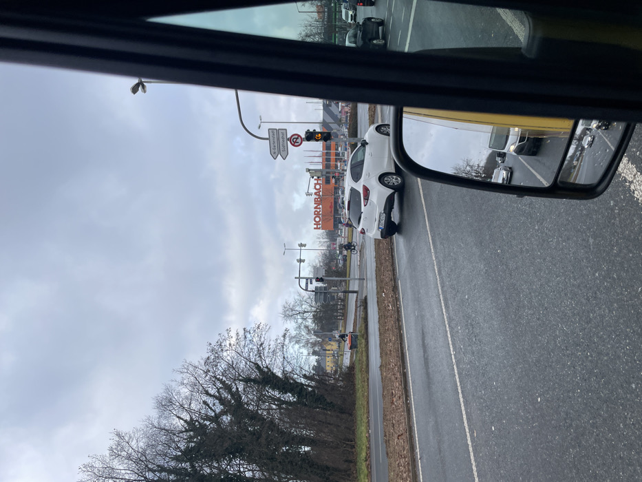 - "The image depicts an urban intersection on an overcast day in Nuremberg, Germany, observed from inside a vehicle, likely a yellow van, indicated by reflections in the passenger side mirror and the visible window frame" by FM-UR63Y2, licensed under CC BY 4.0