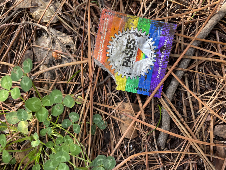 - "The image depicts a partially torn, discarded wrapper for "Grupo Pases Saunas Masculinas" lying on the ground in Sutomore, Montenegro" by FM-oln9s2, licensed under CC BY 4.0