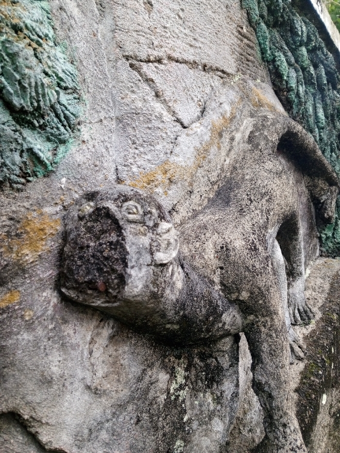 - "A close-up, angled view displays a weathered grey stone relief carving of an animal, identified as a monkey or ape, integrated into a textured stone structure in Batheay, Cambodia" by FM-2rQ4M2, licensed under CC BY 4.0