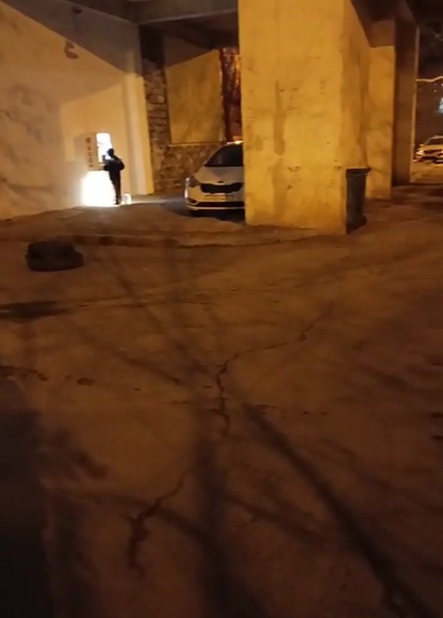 A video taken at night shows a parking garage-like structure