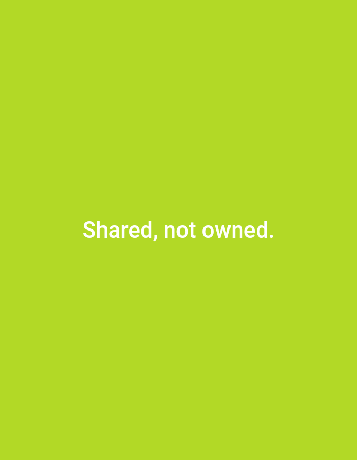 - "The image is a solid lime green background with the text "Shared, not owned" by FM-Vs7T72, licensed under CC BY 4.0